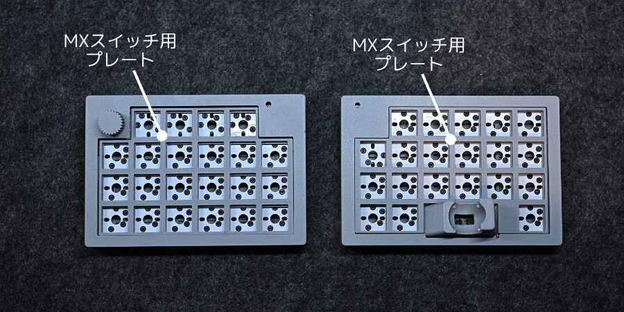 MXスイッチは本体に厚みがあるため、プレートを置いてからキースイッチをはめましょう。