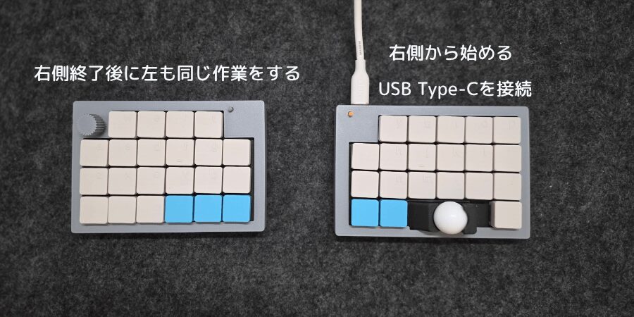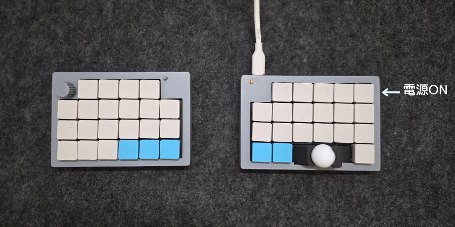 キーボードは右側が親になっているので、最初はUSB Type-Cケーブルを接続してください。