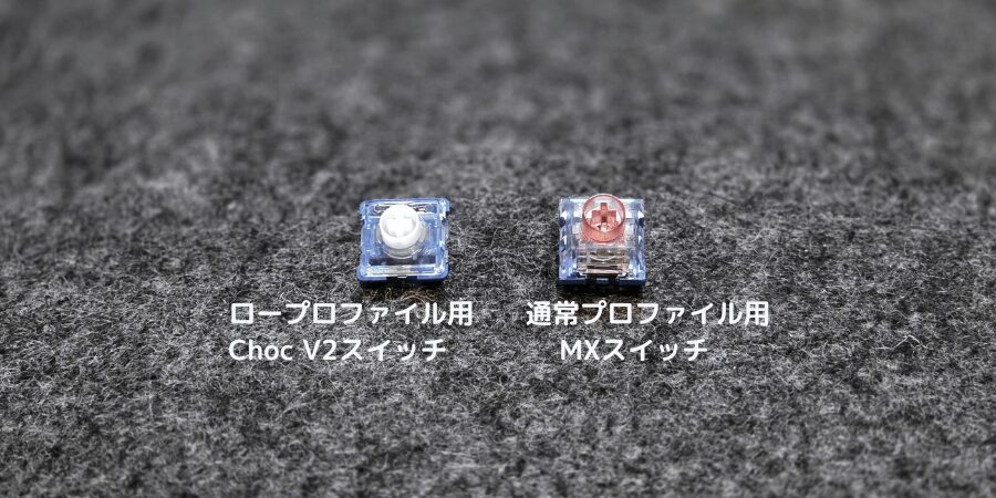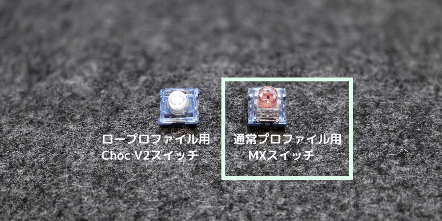 本キーボードは初期にロープロファイル用キースイッチがついてますが、ストロークが深いMXタイプも使えます。