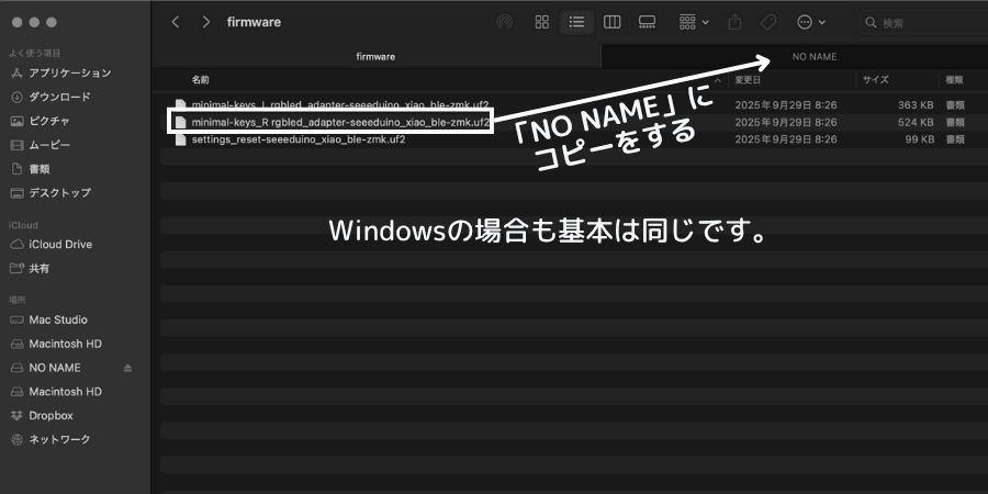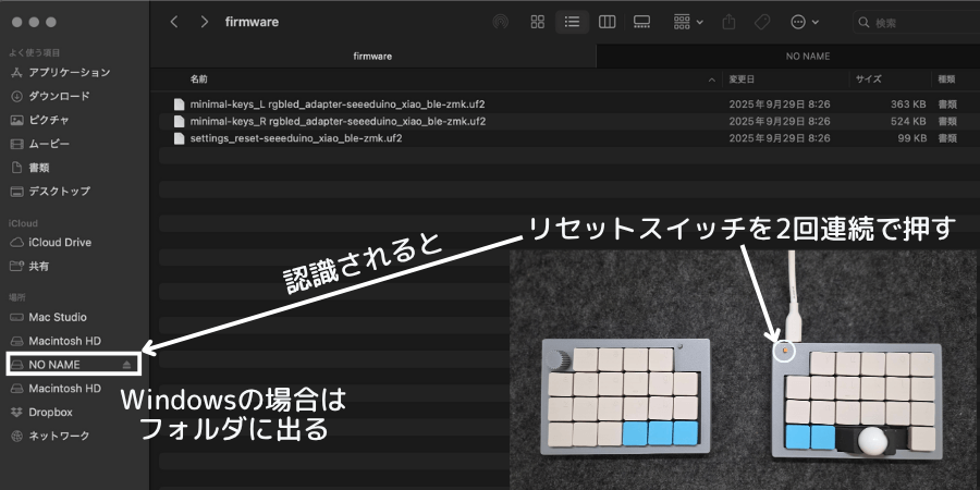 左側も同じ作業をしてファームウェアを書き込む
