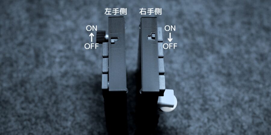 充電方法は左右それぞれでUSB Type-Cケーブルをさして、電源スイッチをONにするだけです。